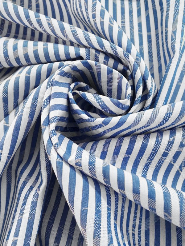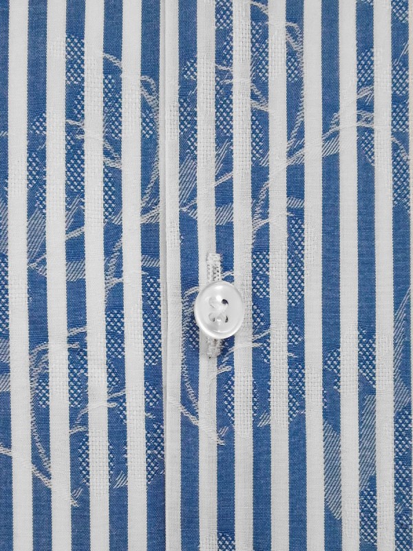 POPELINE FANTASIA RIGA BIANCO BLU 100% COTONE