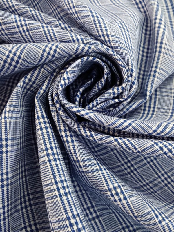 POPELINE QUADRI BIANCO BLU 100% COTONE