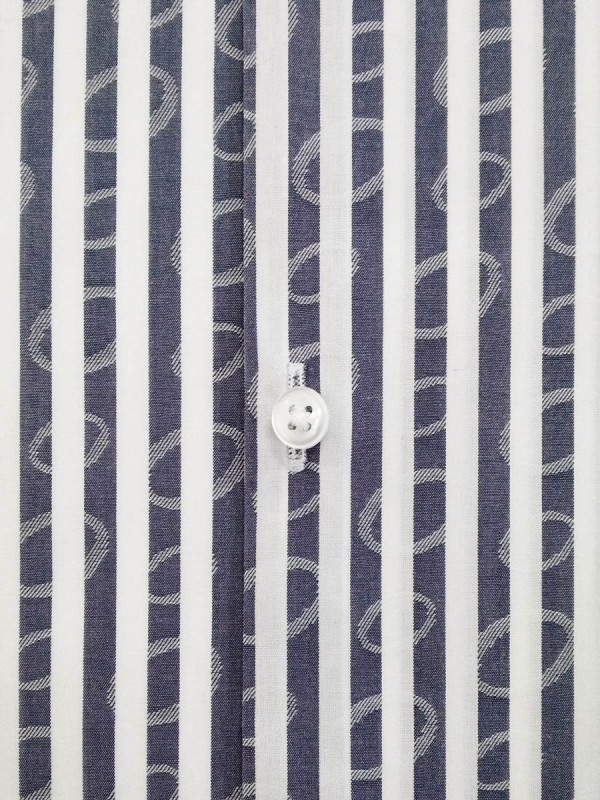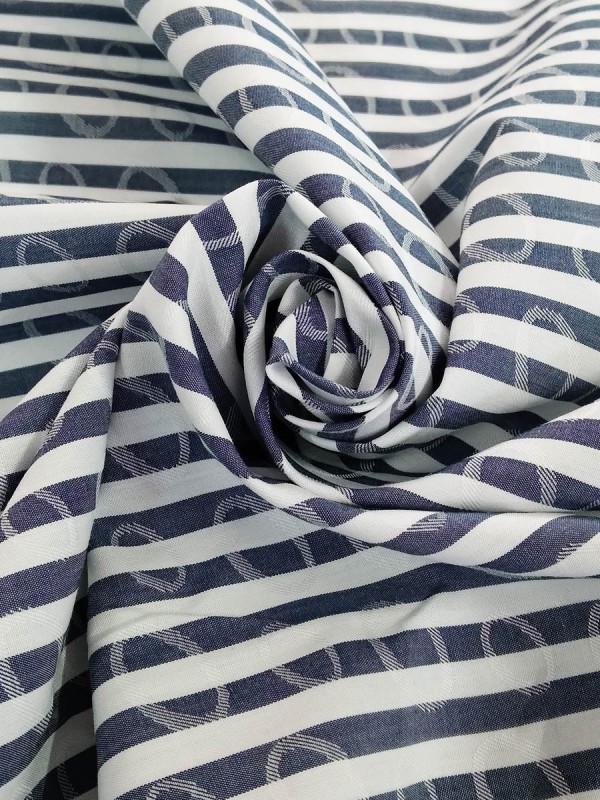 POPELINE RIGATO BIANCO BLU FANTASIA 100% COTONE